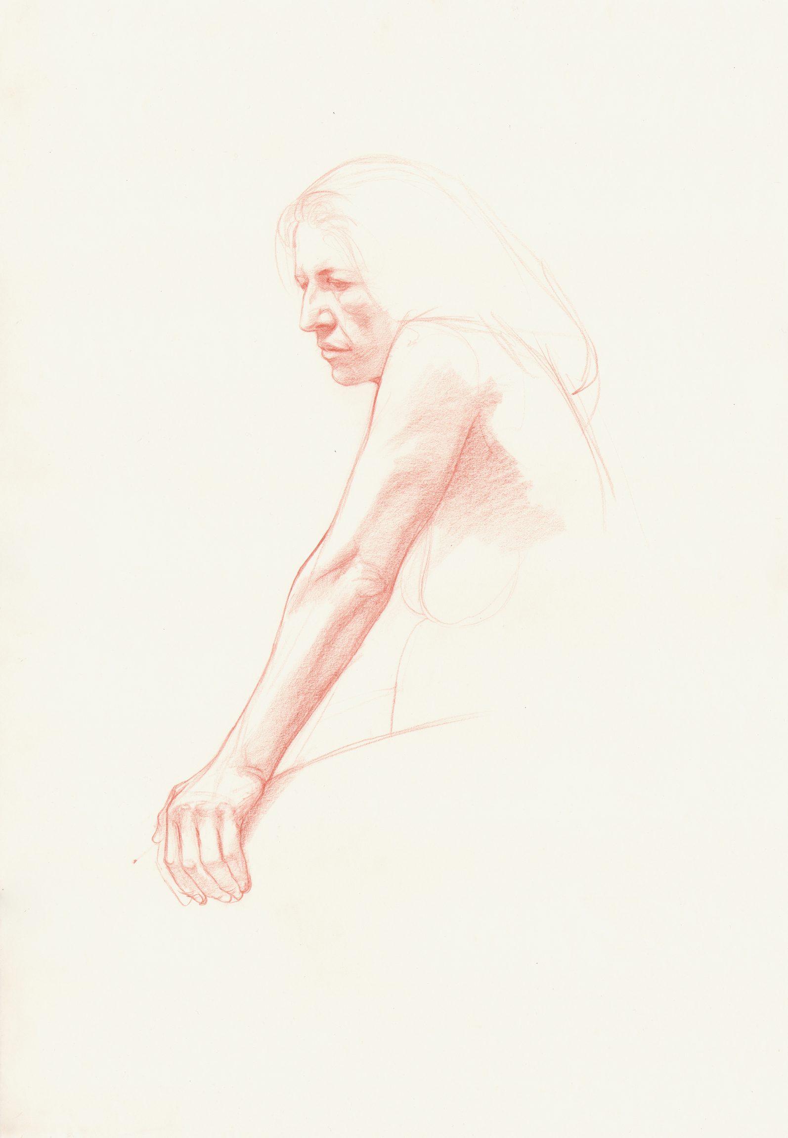 By Dan Gheno, "Woman Leaning into Her Arm," 24x18, oil based pencil. Please click on above image for greater resolution. All Images © 2016 by Dan Gheno