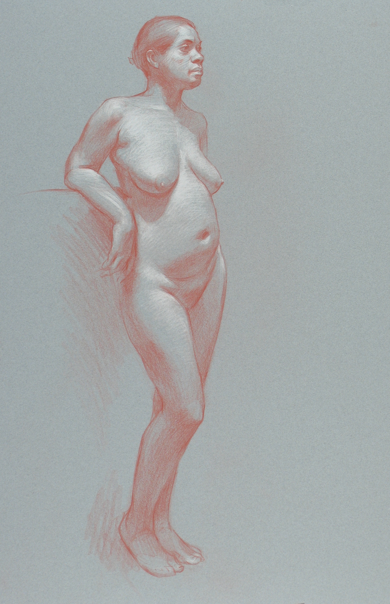 By Dan Gheno, "Andrea Standing," 24 X 18, colored pencil and white chalk on toned paper. Please click on above image for greater resolution. All Images © 2016 by Dan Gheno